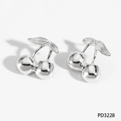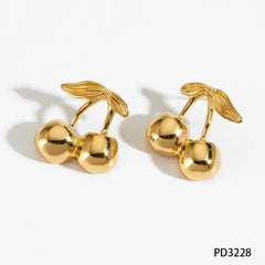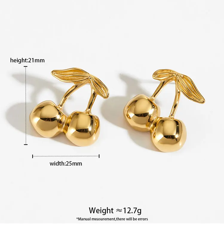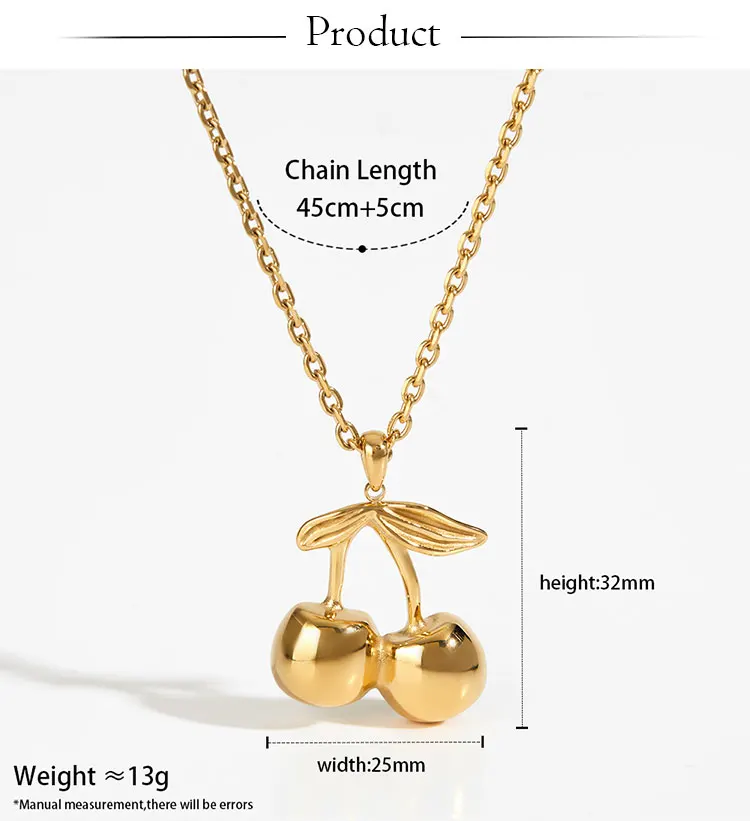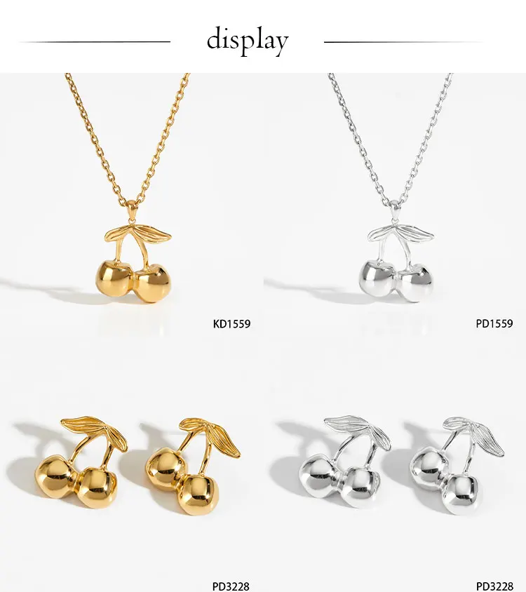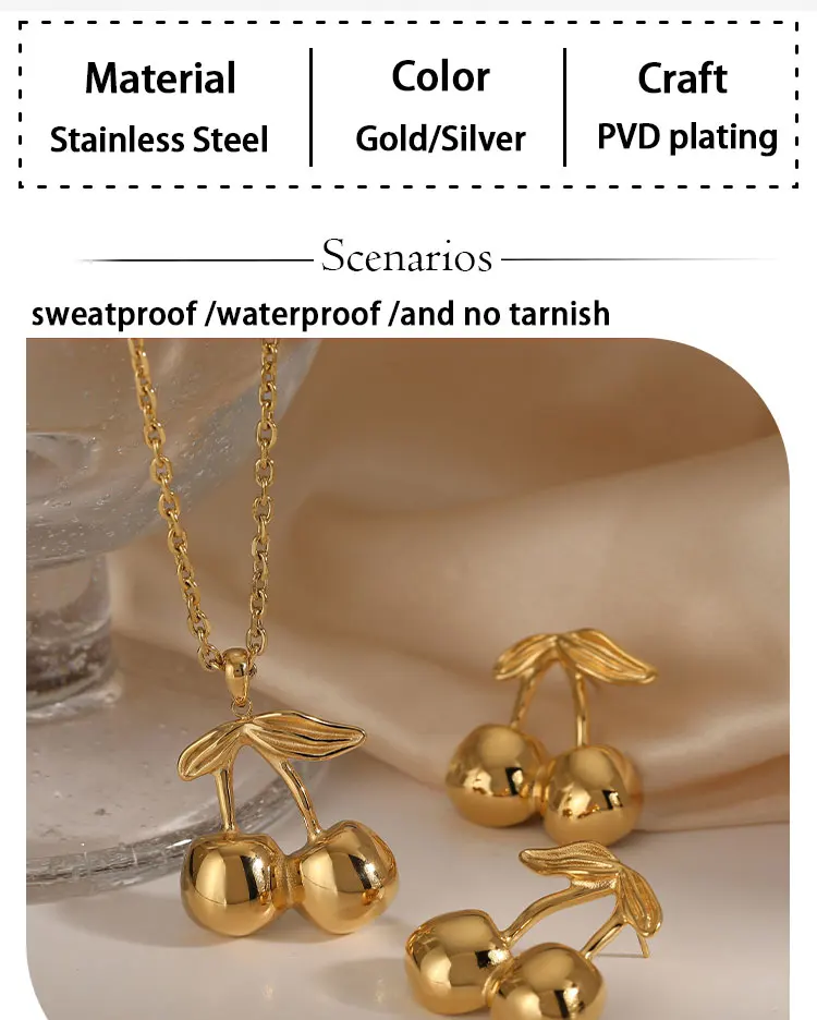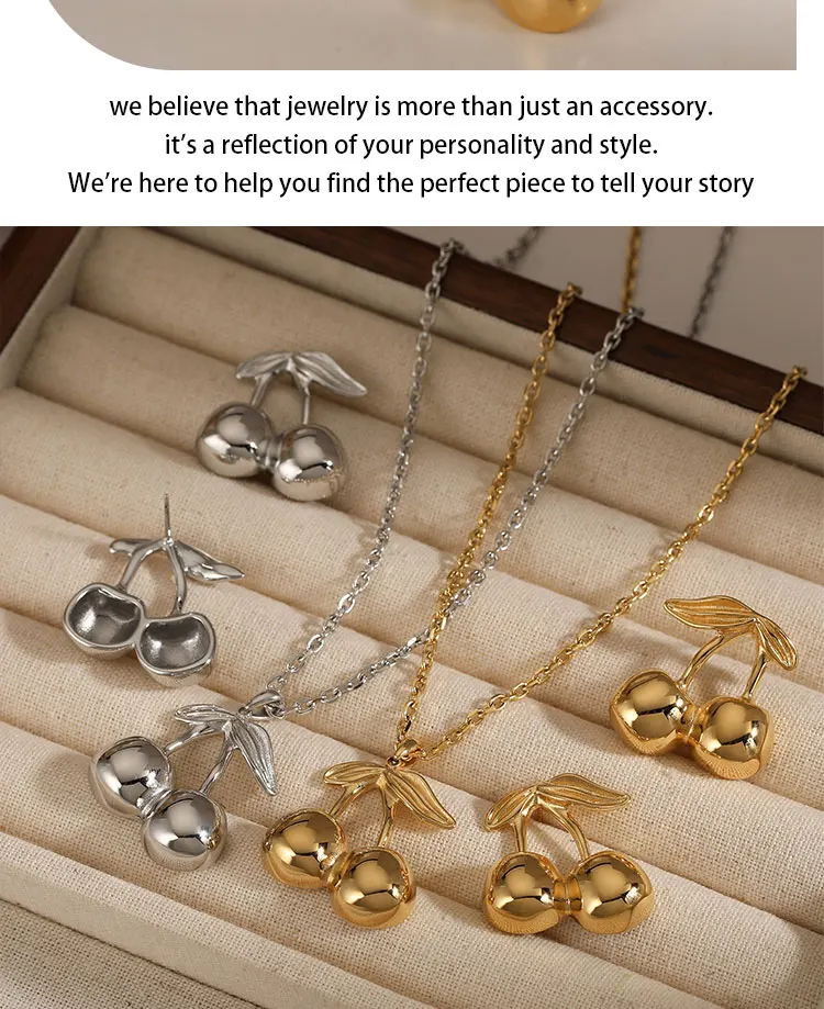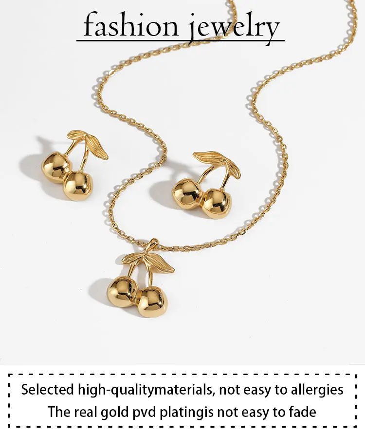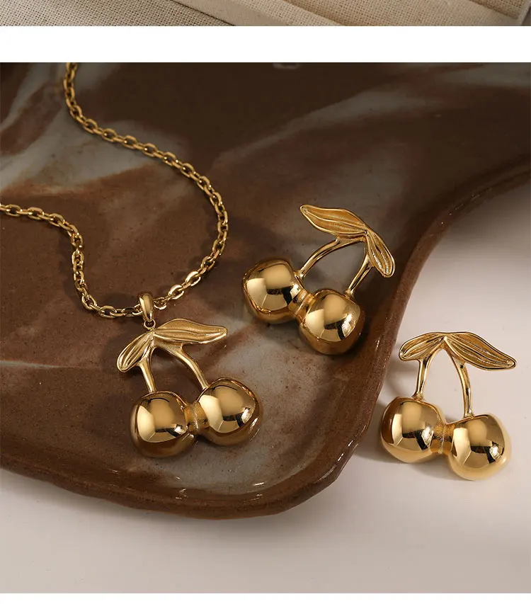 CLIORO Wholesale 316L Gold Plated Stainless Steel Necklace Earrings Jewelry Sets Cute Cherry Pendant Jewelry For Women