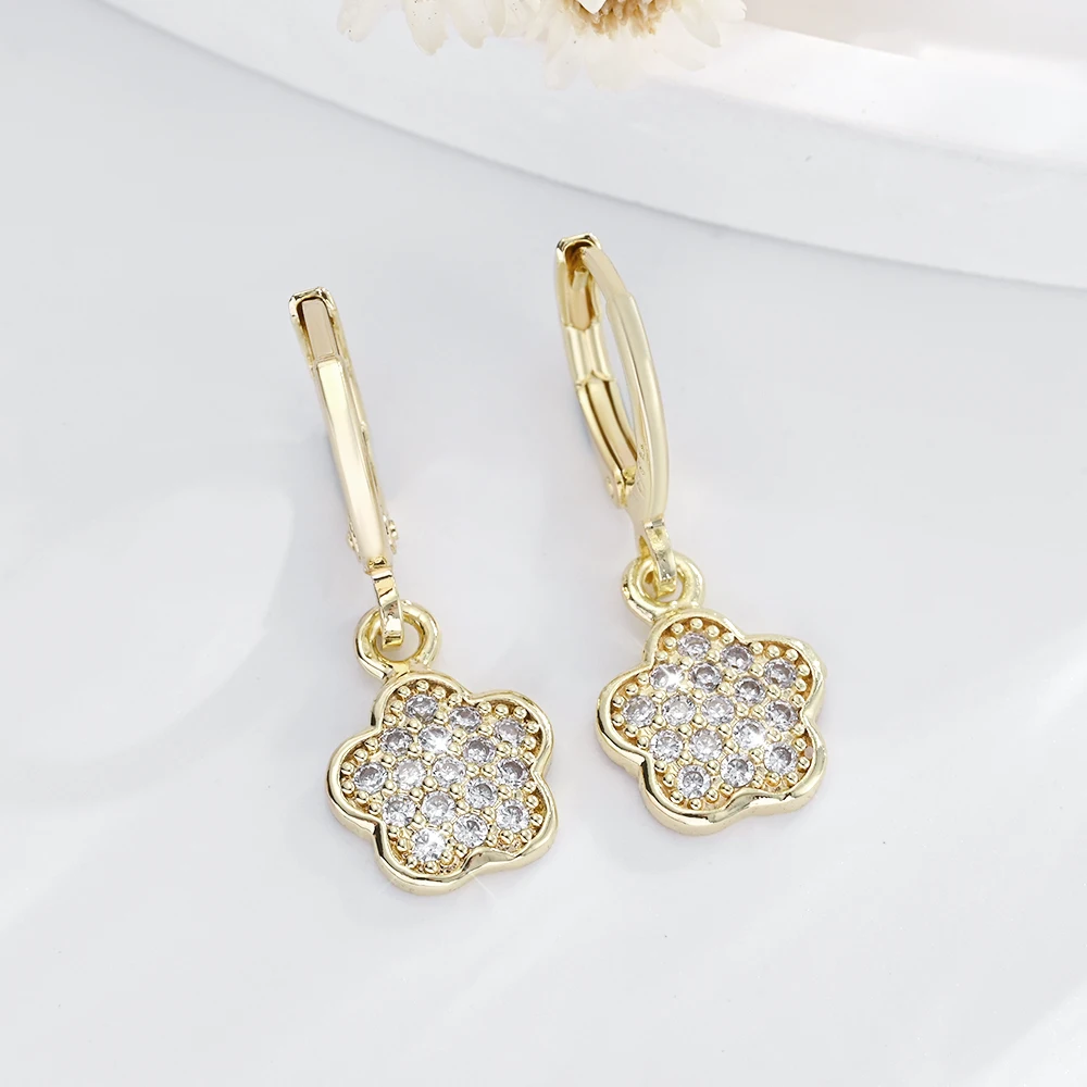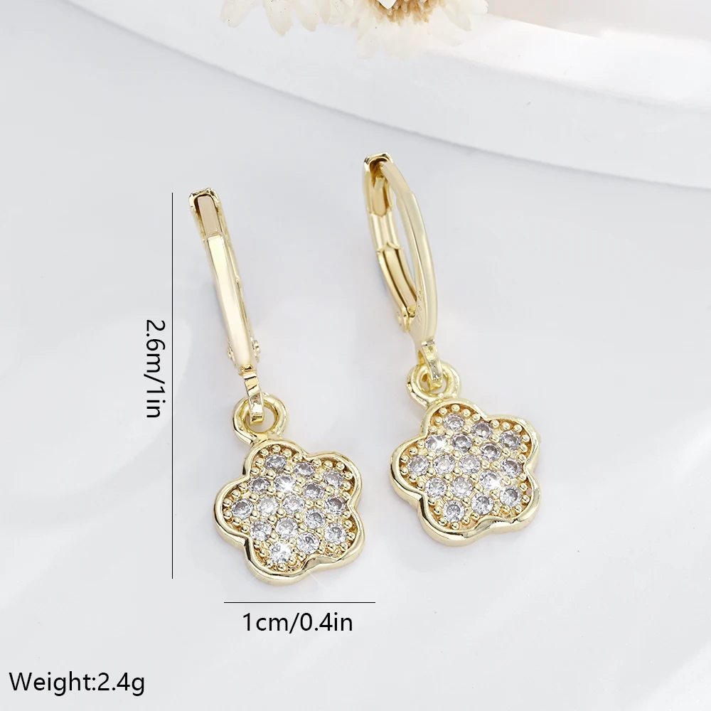 Flower pendant 14k copper gold-plated inlaid zircon dating style brass earrings women's jewelry