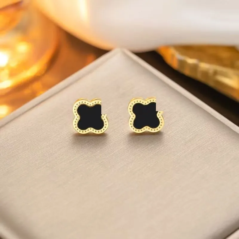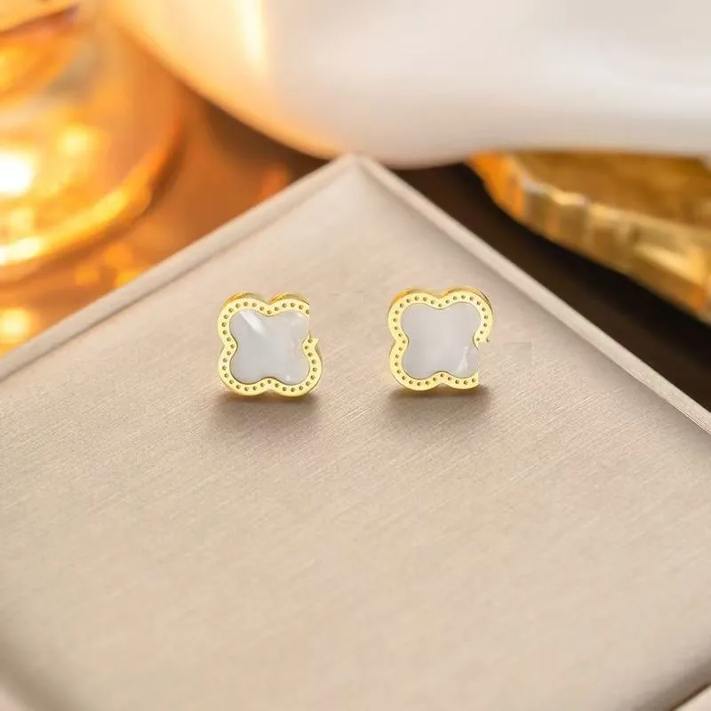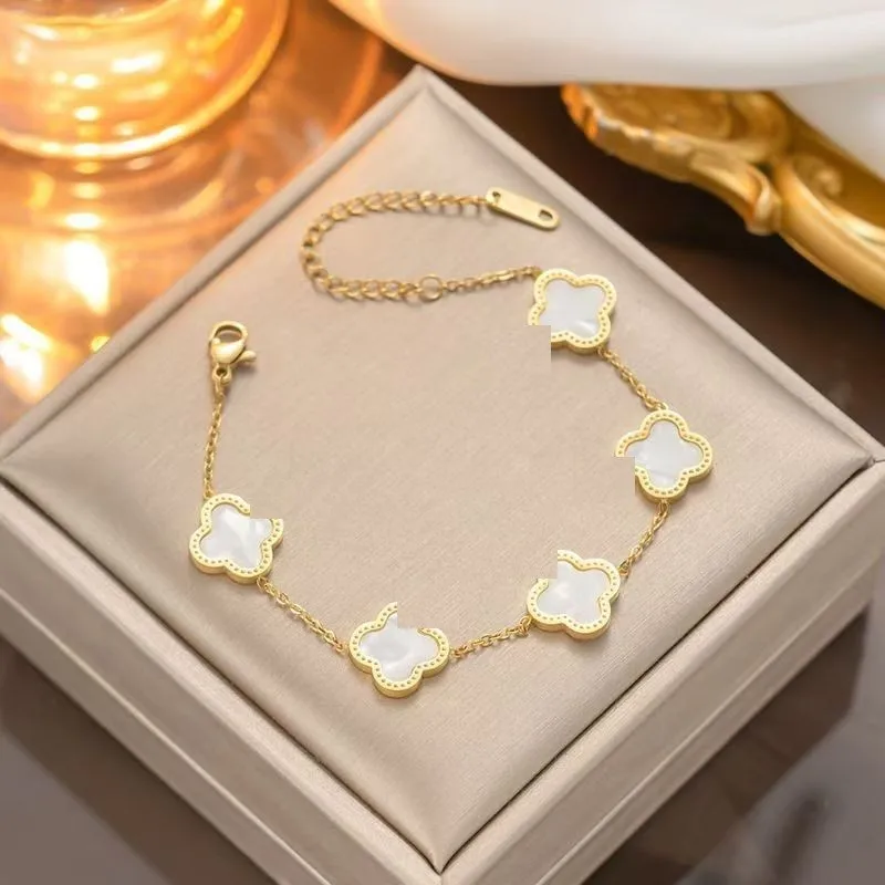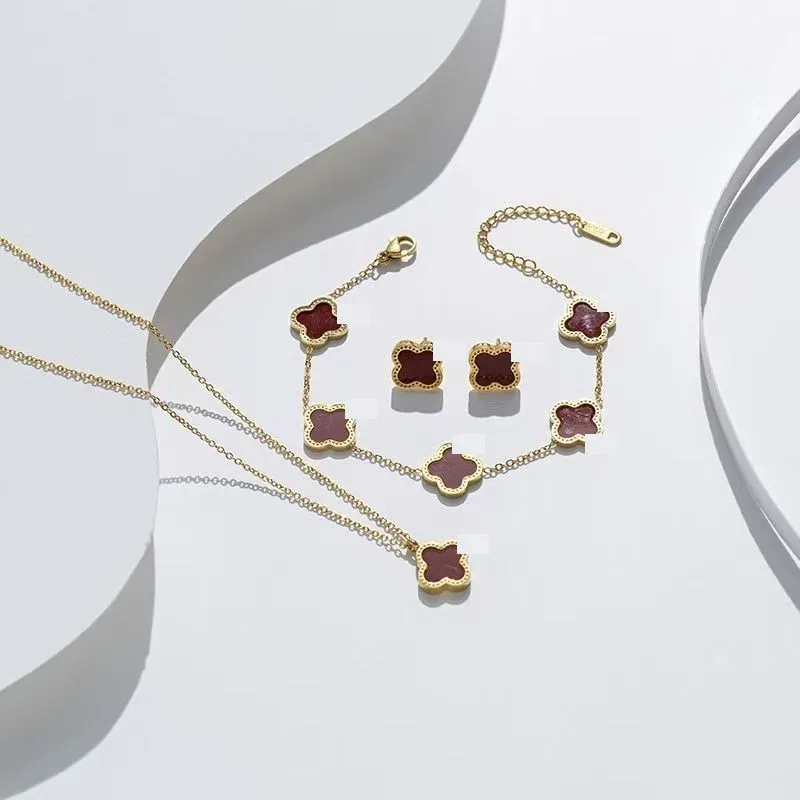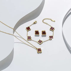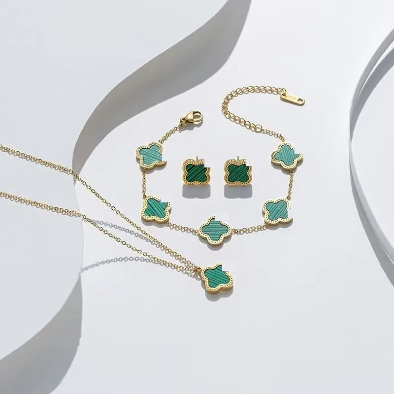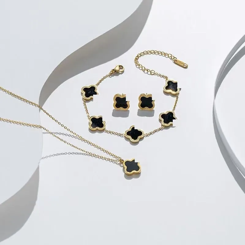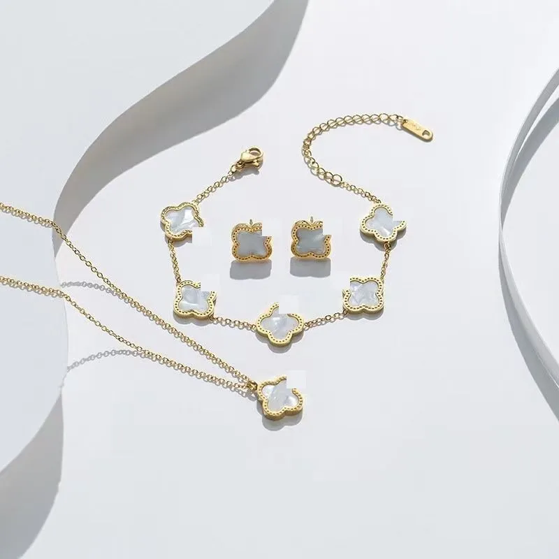 Wholesale 18K Gold Plated 15MM Four-leaf Clover Stainless Steel Jewelry Set Fashion Lucky Clover Bracelet